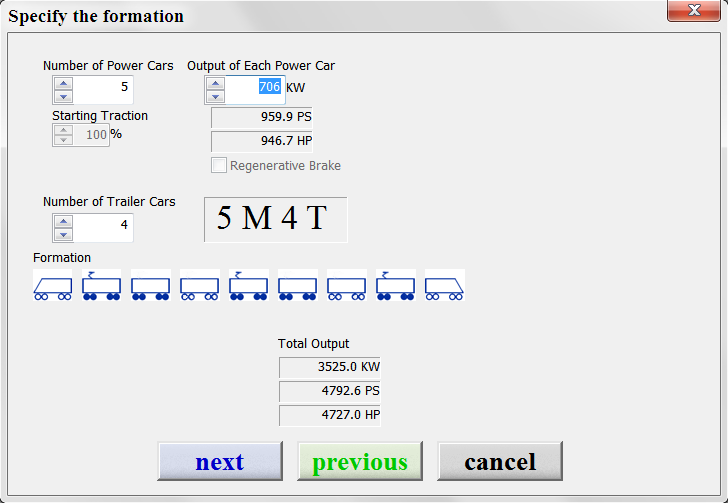 (2) Select the technology level. If 'Apply State of the Art Technology' is checked, designed trains are more light weight and efficient. (3) Select the train set type--Electric Multiple Unit. Click 'Next'. |